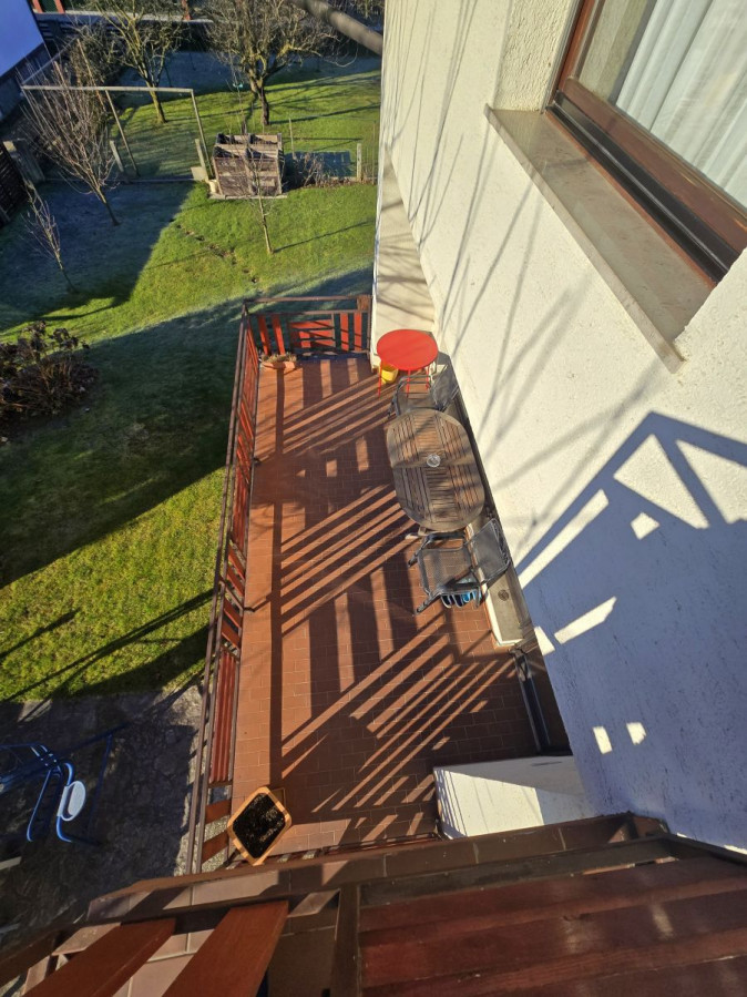 Pripadajoče dvorišče skupne velikosti 1025 m2 je v celoti ograjeno; za večje udobje služijo vhodna vrata na električni pomik.