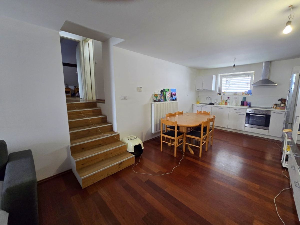Predstavljamo vam prostorno in arhitekturno zanimivo dvoetažno stanovanje (dupleks), kjer sta dnevni in spalni del ločena po etažah ter povezana z notranjimi stopnicami, kar prinaša več zasebnosti, boljšo funkcionalnost in prijetno dinamiko bivanja.