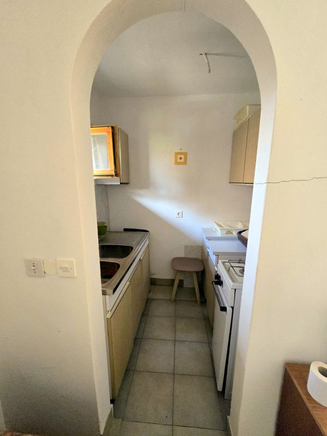 Zidanica obsega bivalni prostor s kuhinjsko nišo ter manjšo shrambo, do katere se dostopa z zunanje terase. V bivalnem prostoru je položen laminat, v kuhinjski niši, shrambi in na terasi keramika. Vgrajena so lesena okna s polkni, strešna kritina je tegola. Dostop do mansardnega dela je omogočen preko pomičnih stopnic iz terase.