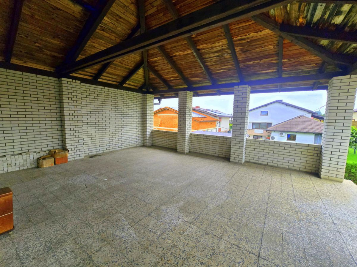 Skupno hiša ponuja 6 sob, 2 kopalnici ter večjo pokrito teraso, ki zagotavlja dodatni zunanji prostor za druženje ali sprostitev.
