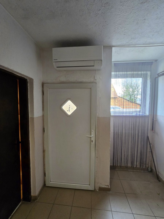 hodnik s klimatsko napravo, PVC vhodnimi vrati in oknom,