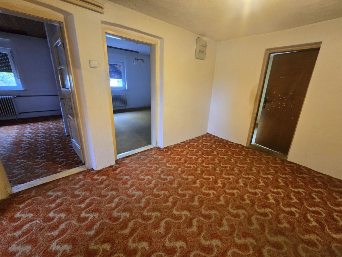 Iz pritličnega hodnika vodijo tri stopnice do spalnega dela hiše, kjer se nahaja večji predprostor ter dve manjši in dve večji sobi, od katerih imajo tri sobe nova PVC okna.