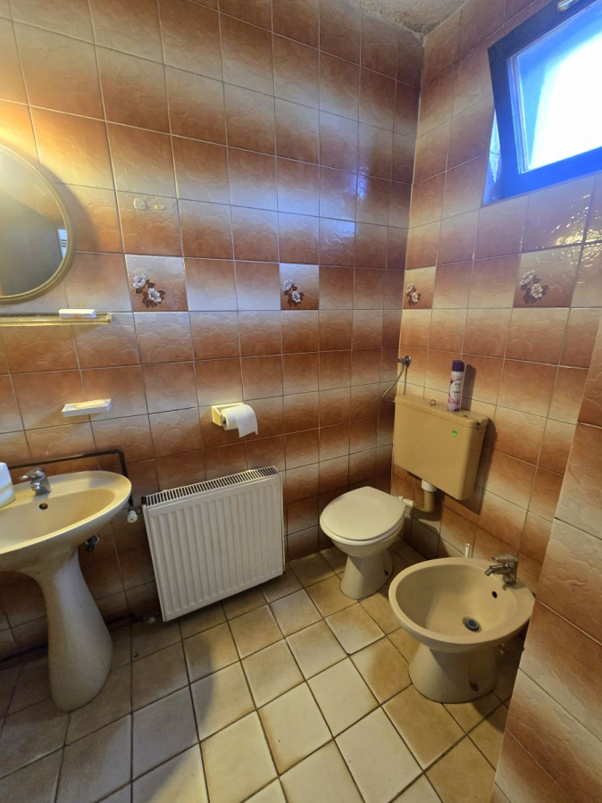 kopalnico (WC, bide, kad, električni bojler, leseno okno),