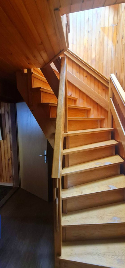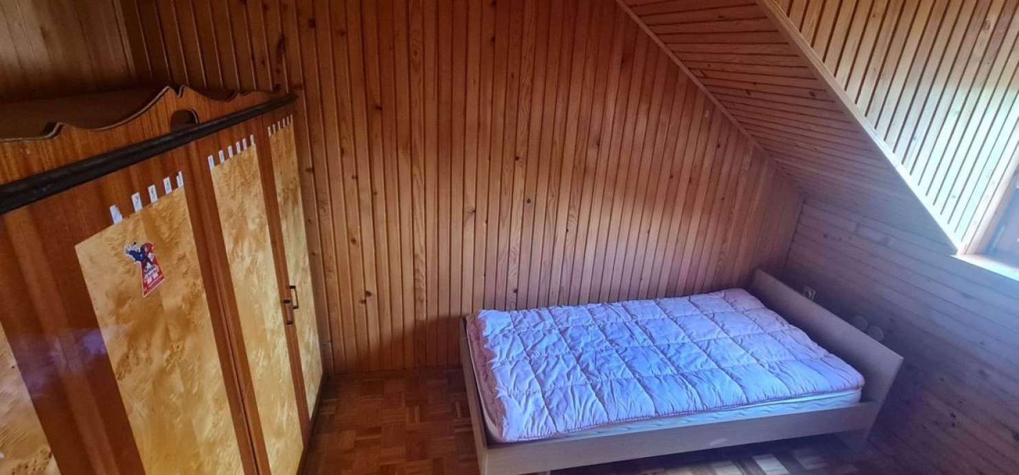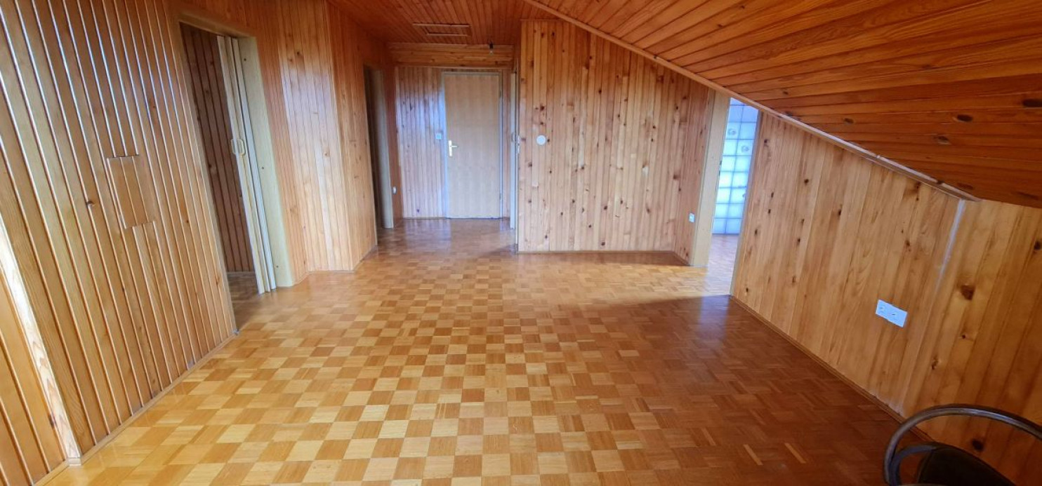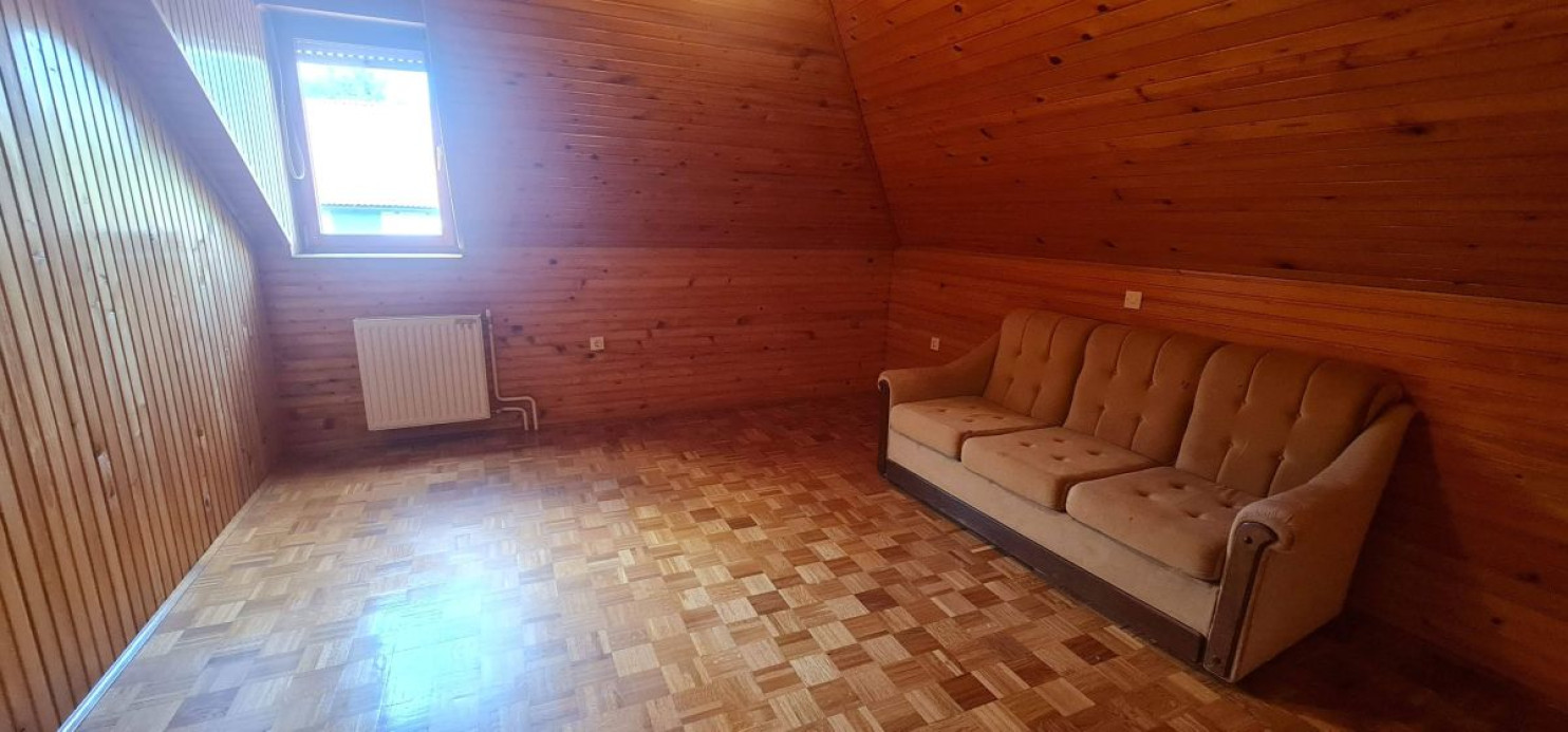 Celotna notranjost mansarde je obdelana z lesom, talna obloga je parket, v kopalnici in sanitarijah je položena keramika, okna pa so lesena z roletami.