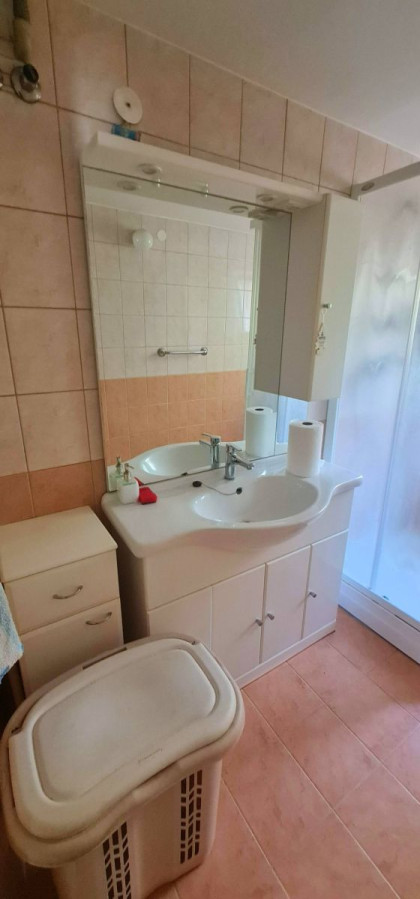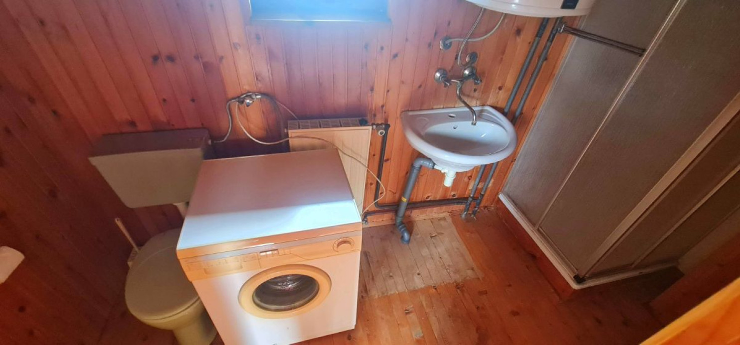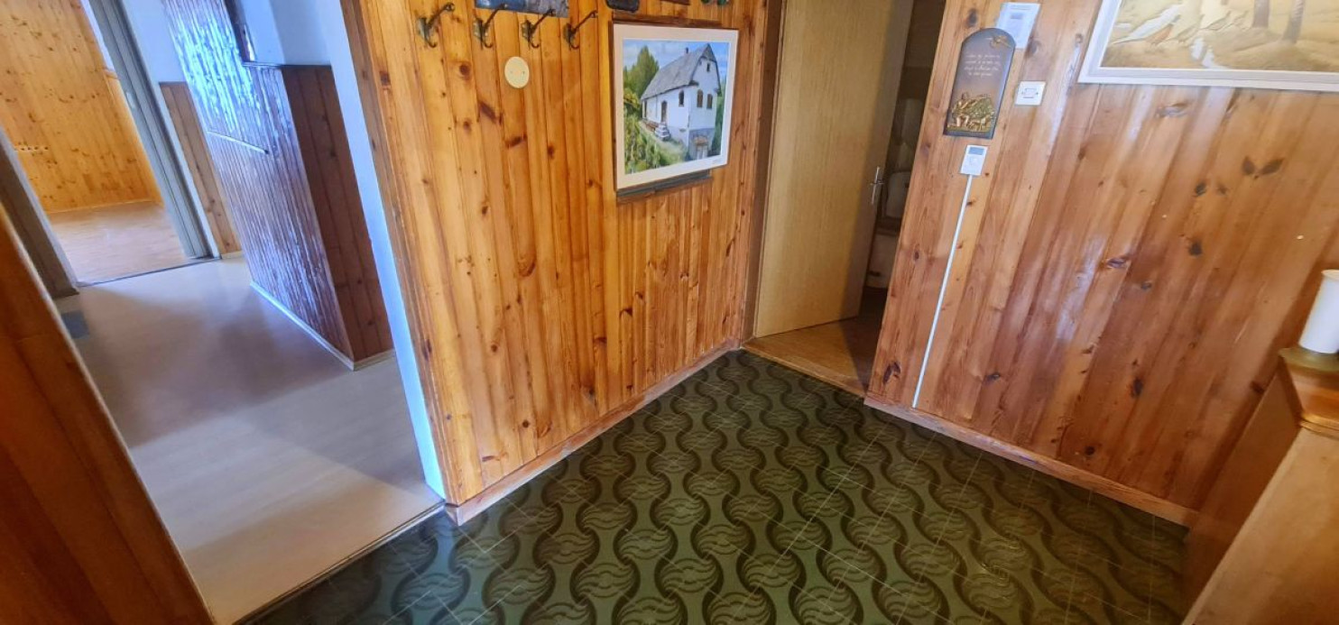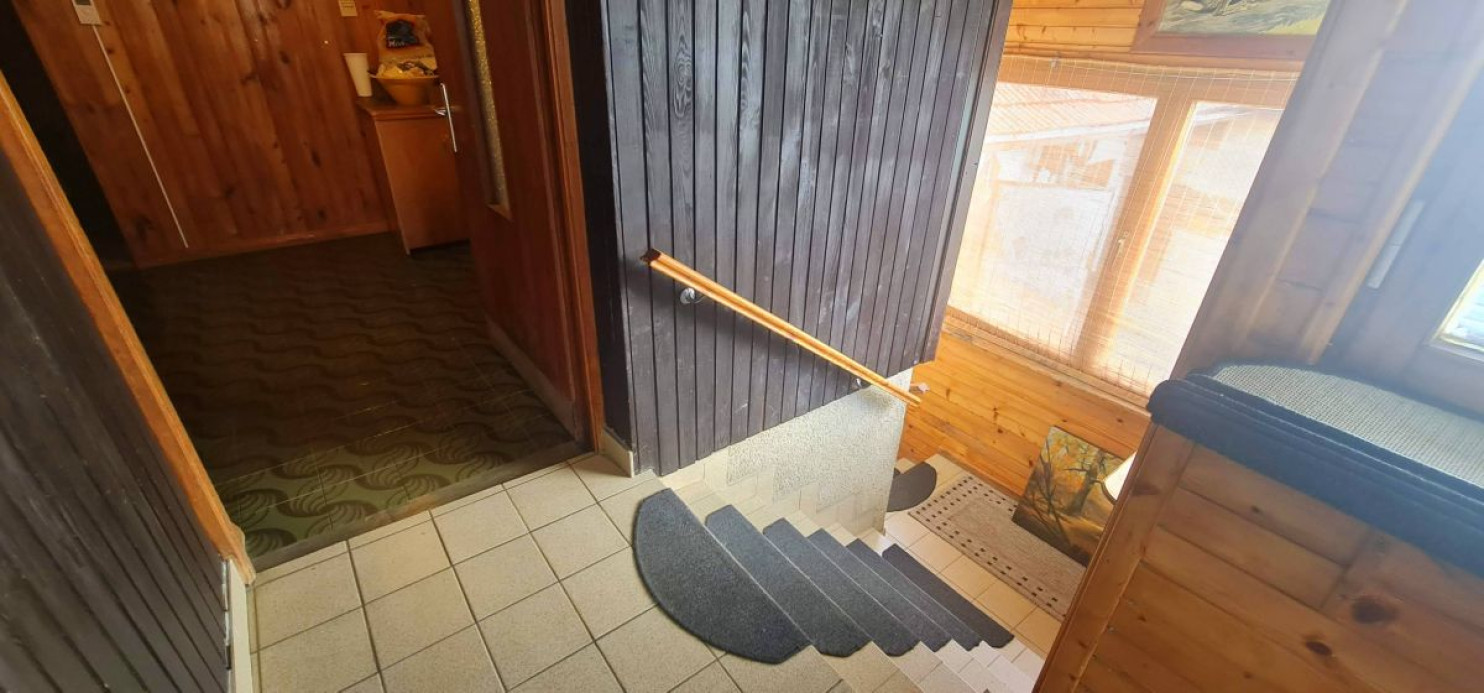Vhod v bivalne prostore je omogočen z dveh strani pokrite verande in sicer s cestne in z dvoriščne strani, kjer je predprostor in v nadaljevanju hodnik, kuhinja s shrambo, 2 spalnici in kopalnica s tuš kabino. V tem delu hiše so bila zamenjana okna pred 15 leti (PVC izvedbe z roletami), talna obloga je laminat, v kopalnici keramika. Na hodniku je obstoječa peč na trda goriva za potrebe ogrevanja te etaže v prehodnih obdobjih.