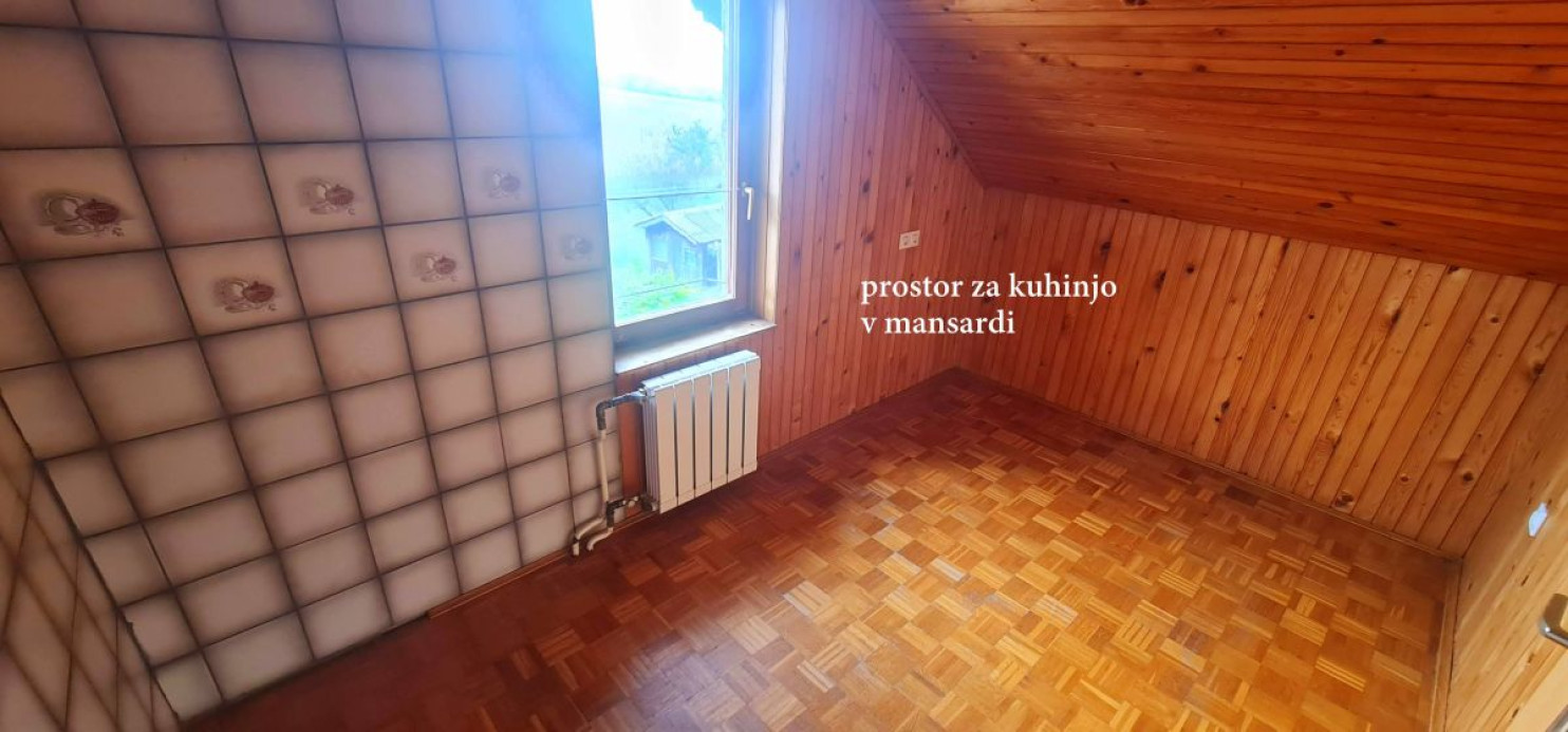 Mansardni prostori so dostopni po stopnicah v drugem predprostoru, od kjer se vstopi v večji odprti prostor z izhodom na balkon, nadalje 3 sobe (med njima 2 med sabo povezani), prostor za kuhinjo ( z vso potrebno inštalacijo za kuhinjo), kopalnica s kadjo ter ločene sanitarije.