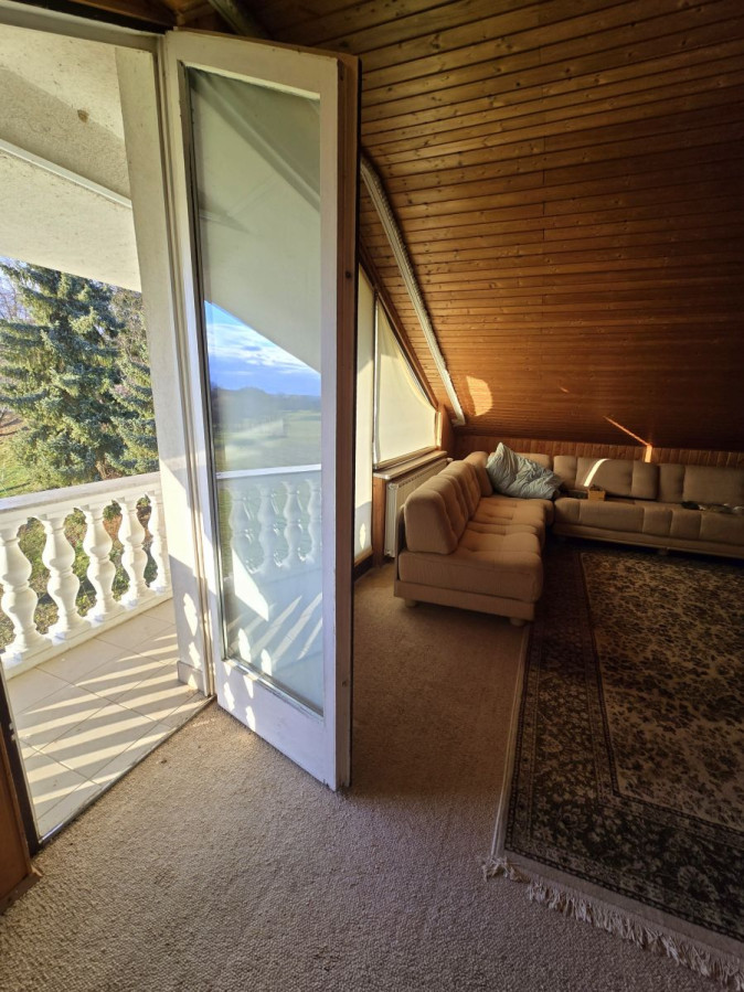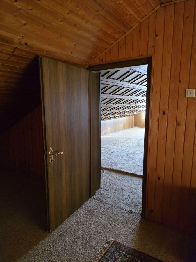 Mansardni del hiše vključuje tudi kopalnico s kadjo, ločene sanitarije, dnevni prostor z izhodom na balkon in še eno spalnico. Ta prostor je idealen za zasebnost ali kot samostojen bivalni prostor.